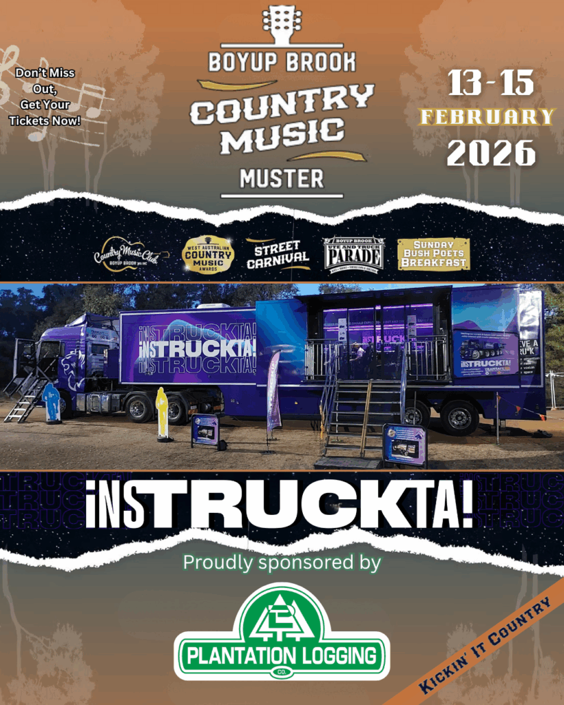The TRANSAFE WA Safety Truck iNSTRUCKTA! will be at The Boyup Brook Country Music Muster from Friday the 13th to Sunday the 15th of February 2026.
