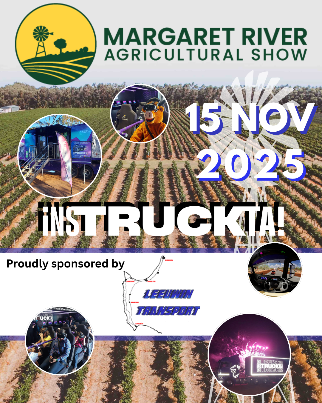 The TRANSAFE WA Safety Truck iNSTRUCKTA! will be at The Margaret River Agricultural Show on Saturday the 15th of November, 2025. Come and visit iNSTRU