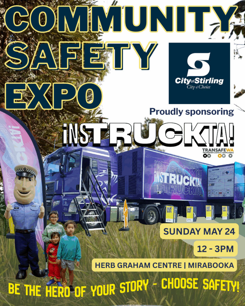 The TRANSAFE WA Safety Truck iNSTRUCKTA! will be at The City of Stirling Community Safety Expo on Sunday the 24th of May 2026.