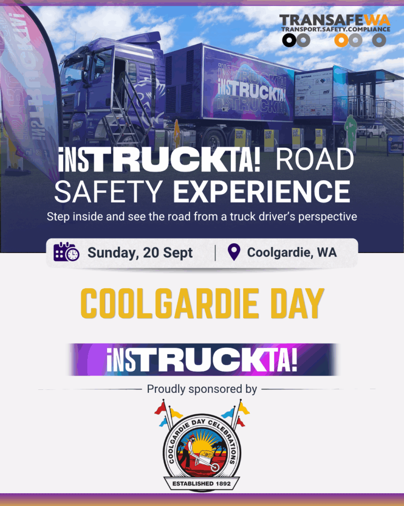 The TRANSAFE WA Safety Truck iNSTRUCKTA! will be at Coolgardie Day on Sunday the 20th of September 2026.