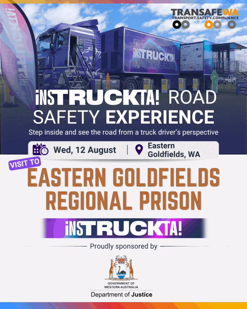 The TRANSAFE WA Safety Truck iNSTRUCKTA! will be at visiting the Eastern Goldfields Regional Prison on Wednesday the 12th of August 2026.