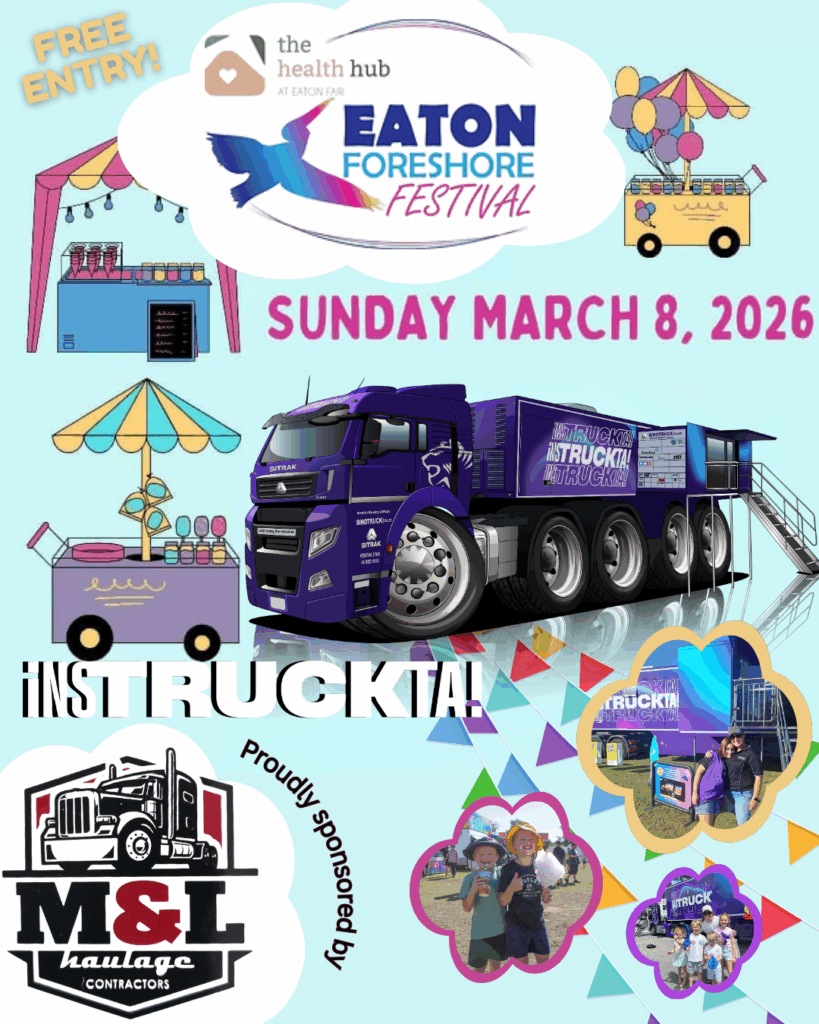 The TRANSAFE WA Safety Truck iNSTRUCKTA! will be at The Eaton Foreshore Festival on Sunday the 8th of March 2026.