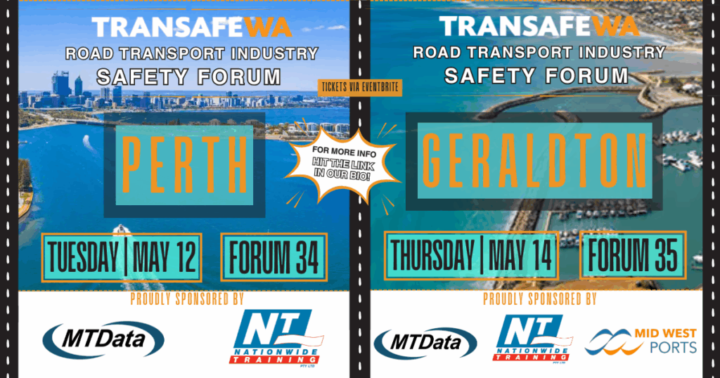 TRANSAFE WA will be hosting two Road Transport Industry Safety Forums in May 2026, providing an opportunity for industry representatives, government agencies and members of the community to come together to discuss important road issues impacting Western Australia.