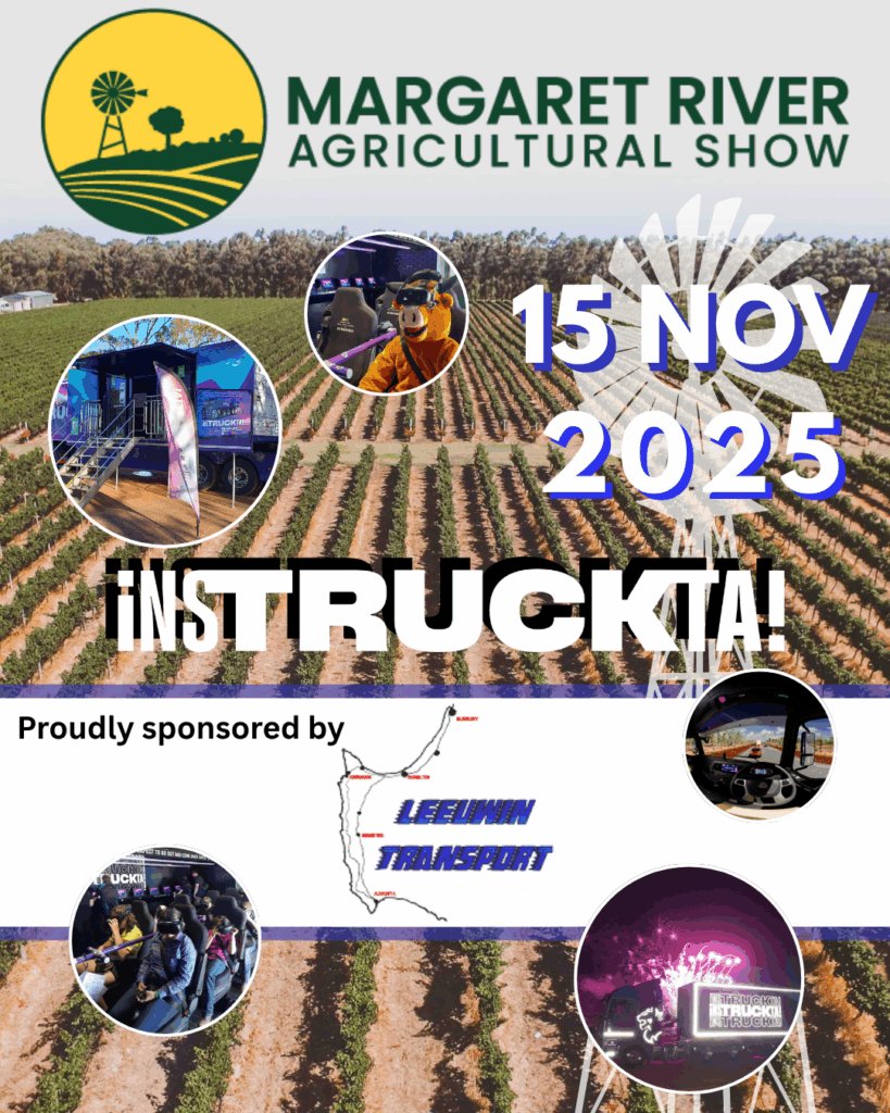 The TRANSAFE WA Safety Truck iNSTRUCKTA! will be at The Margaret River Agricultural Show on Saturday the 15th of November, 2025.