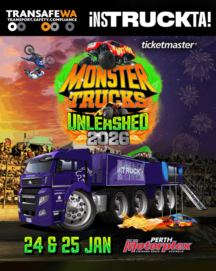 The TRANSAFE WA Safety Truck iNSTRUCKTA! will be at Monster Trucks Unleashed on Saturday the 24th & Sunday the 25th of January 2026.