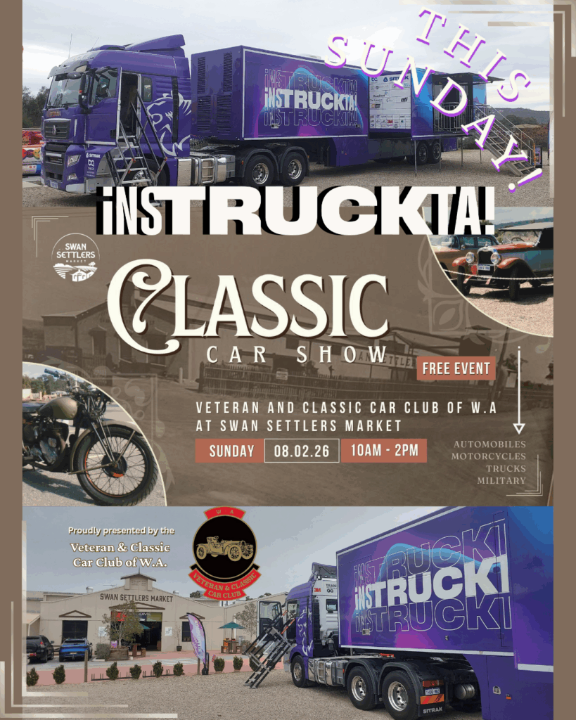 The TRANSAFE WA Safety Truck iNSTRUCKTA! will be at The Classic Car Show on Sunday the 8th of February, 2026.