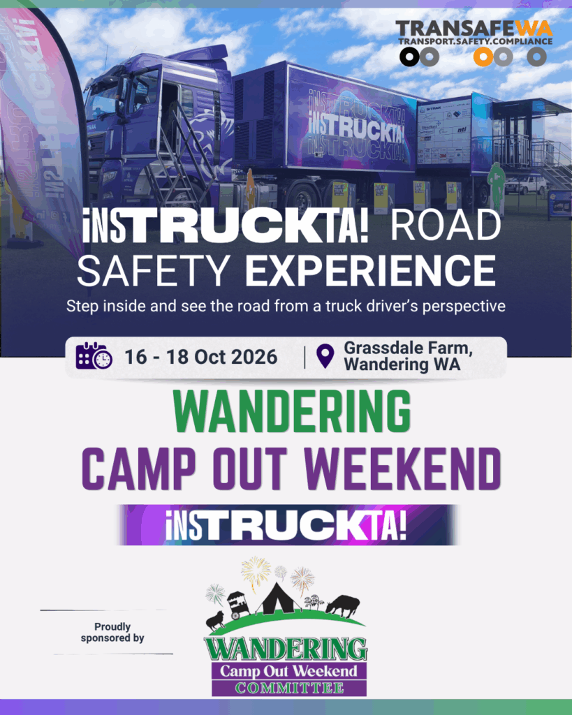 The TRANSAFE WA Safety Truck iNSTRUCKTA! will be at The Wandering Camp Out Weekend from Friday the 16th to Sunday the 18th of October 2026.