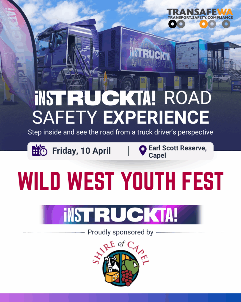 The TRANSAFE WA Safety Truck iNSTRUCKTA! will be at The Wild West Youth Fest on Friday the 12th of April 2026.